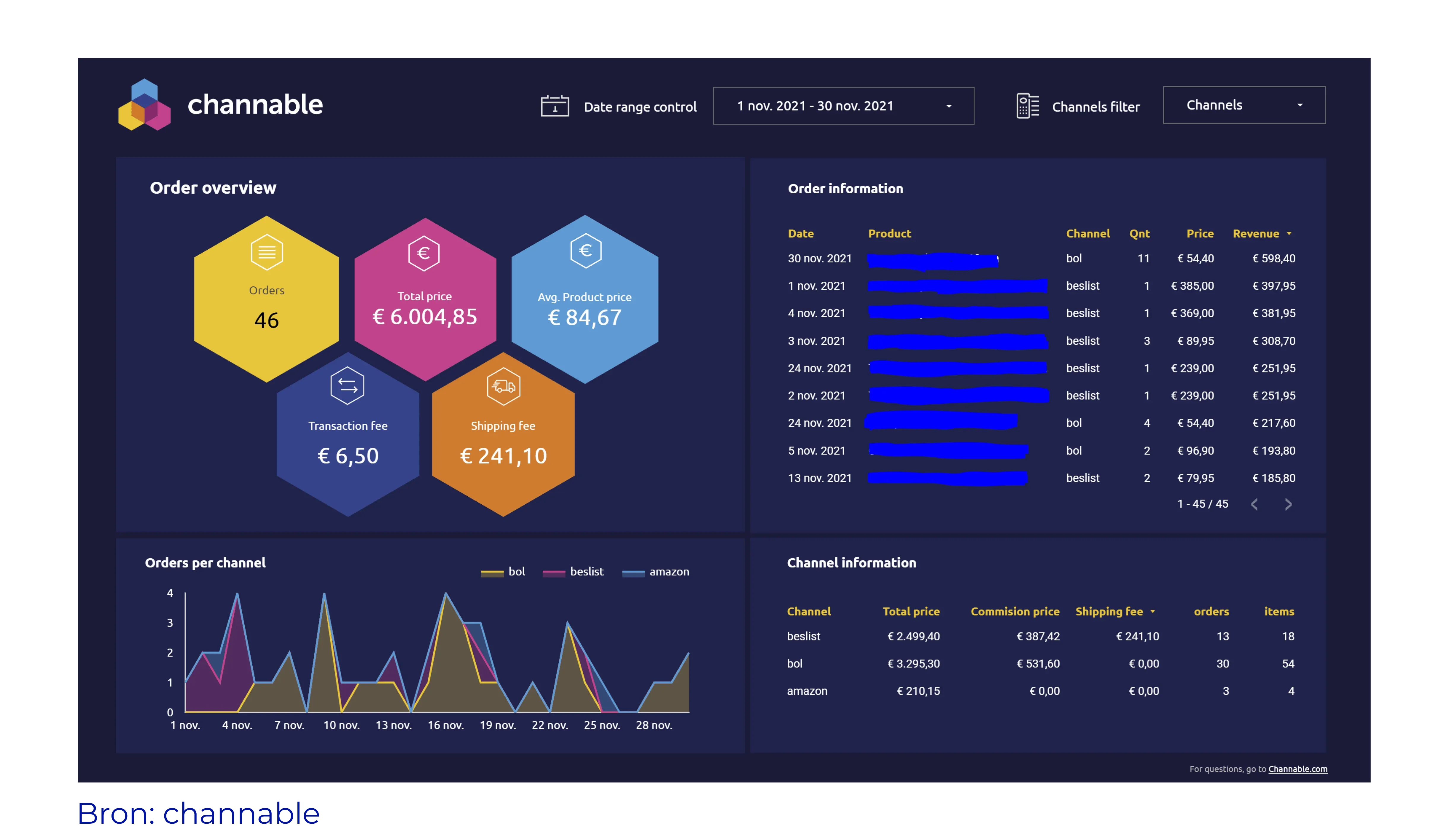 Koppel je online Shopware, WooCommerce of Shopify webshop met alle populaire marktplaatsen, waaronder Amazon, eBay, Meta en meer, en bereik je klanten waar ze zich bevinden. Maak gebruik van de API-verbindingen om je bestellingen te synchroniseren zonder in te hoeven loggen op meerdere verkoopportalen. En als je vragen hebt kan je zowel bij ons terecht of gebruik maken van de support van Channable.