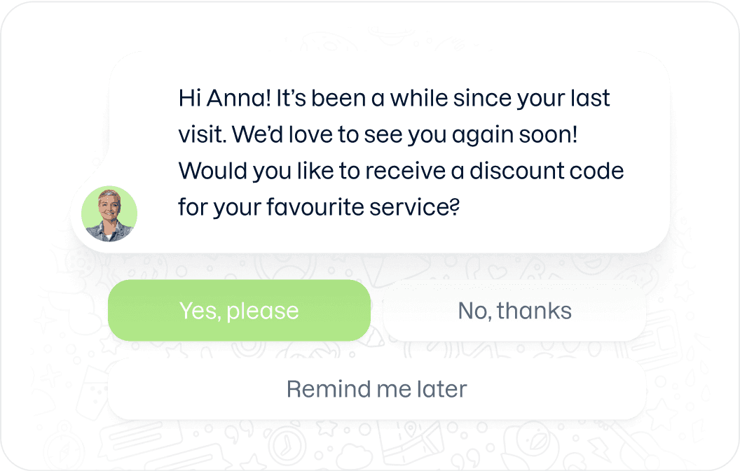 Kom in contact met je klanten via 's werelds populairste messaging app. Sluit je bedrijf aan op de WhatsApp Business API en ontgrendel alle omzet verhogende functies. Beheer samen met het team één WhatsApp Business-nummer. Wijs inkomende berichten toe aan collega's en werk samen aan klantvragen via interne @tagging. Stroomlijn teamprestaties met geautomatiseerde workflows en beantwoord veelgestelde vragen automatisch met een chatbot zonder code. Voeg je eigen Call to actions toe en betrek klanten en prospects.